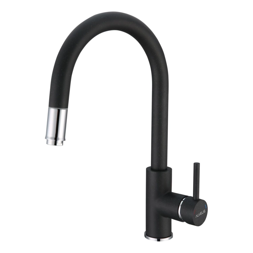 ALVEUS 1129022 - Змішувач для раковини з висувним душем DELOS 38 см граніт/чорний