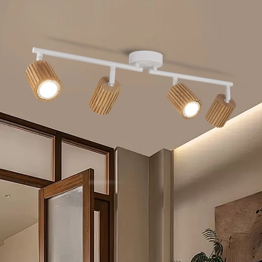 Brilagi - Точковий світильник MODERN WOOD 4xGU10/8W/230V каучукове дерево/білий характеризується гарним дизайном і функціональним виконанням. Для світильника призначена лампочка з цоколем GU10. Тут Ви можете купити інші лампочки за вигідною ціною. Таким чином, Ви отримаєте цікаве доповнення до свого будинку. Використання натуральних матеріалів надає кожному виробу неповторного вигляду. Характерні риси дерева з сучками та текстурою гарантують унікальність кожного виробу, тому вони не можуть бути ідентичними з виробами на зображеннях. У зв'язку з цим ми хотіли б відзначити, що скарги з приводу відмінностей дерев'яного візерунка не приймаються через різноманітність природного матеріалу.