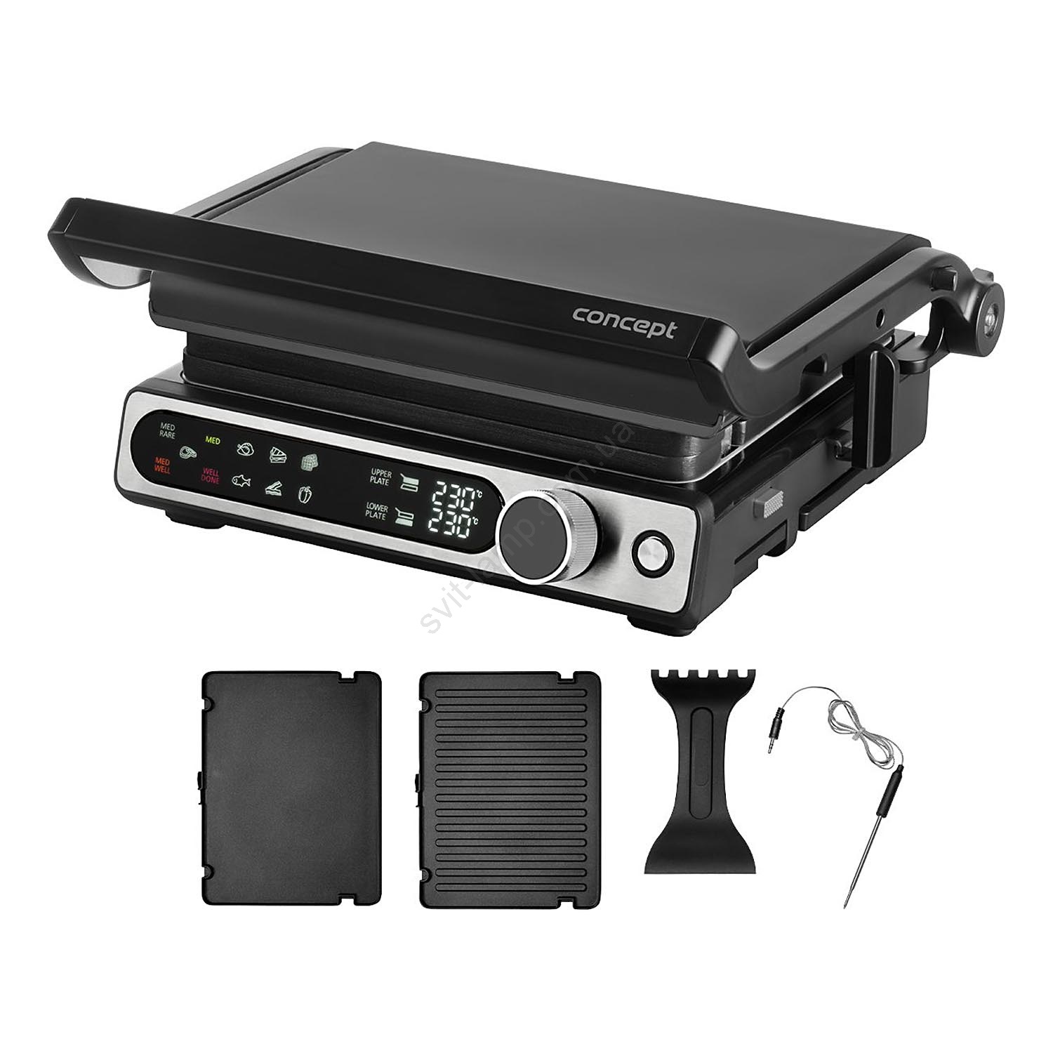 Concept ge3500 - Контактний гриль з температурним датчиком 2000 Вт/230 В чорний