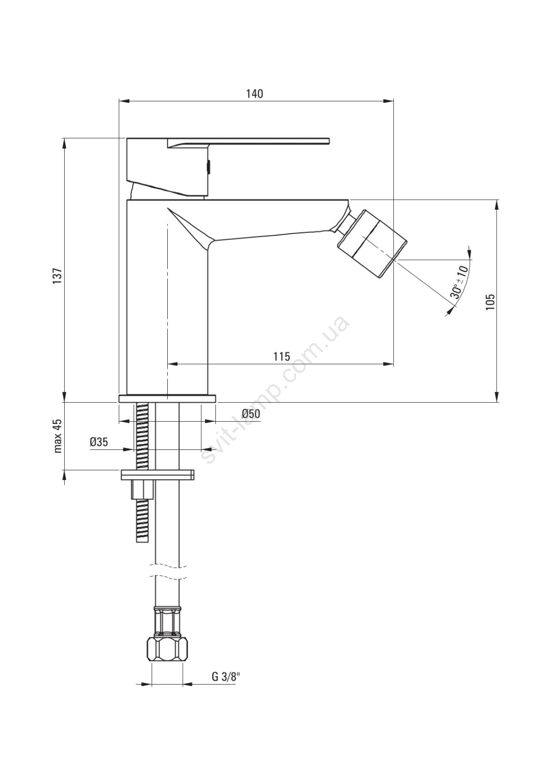 • У комплекті підключні шланги 45cm.