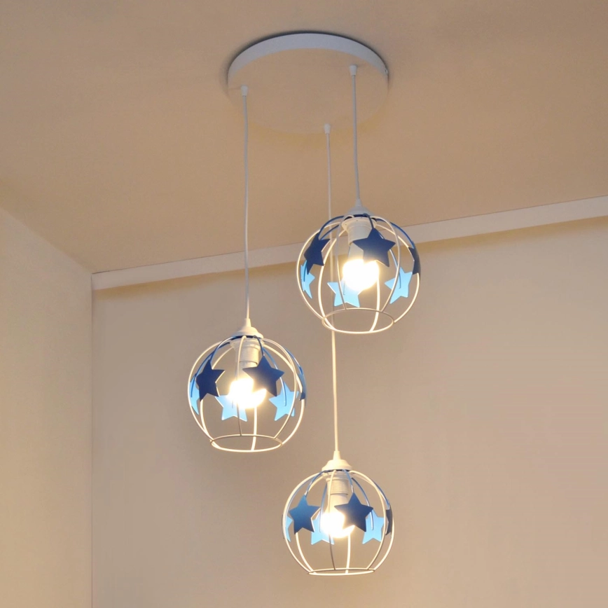 Дитяча підвісна люстра STARS 3xE27/15W/230V синій/білий характеризується гарним дизайном і функціональним виконанням. Для світильника призначена лампочка з цоколем E27. Тут Ви можете купити інші лампочки за вигідною ціною. Таким чином, Ви отримаєте цікаве доповнення до свого будинку.
