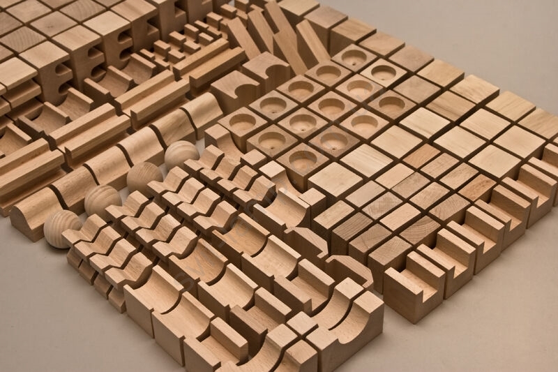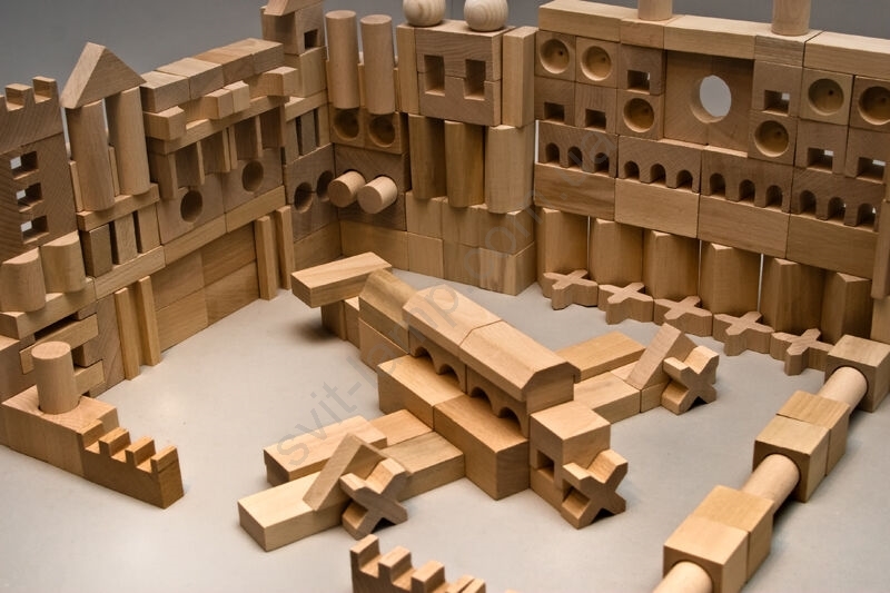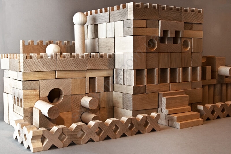 У наборі 220 дерев'яних кубиків різних форм, виготовлених з букової деревини, які сприятимуть природному розумовому розвитку вашої дитини.