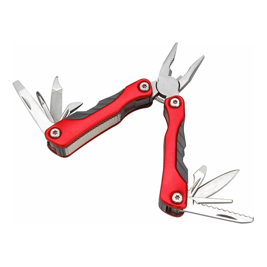 • Функції: плоскогубці, 2 пилочки, пилка, рукоятка ножа, викрутки плоска + PH, 2 відкривачки (консерви, напої).