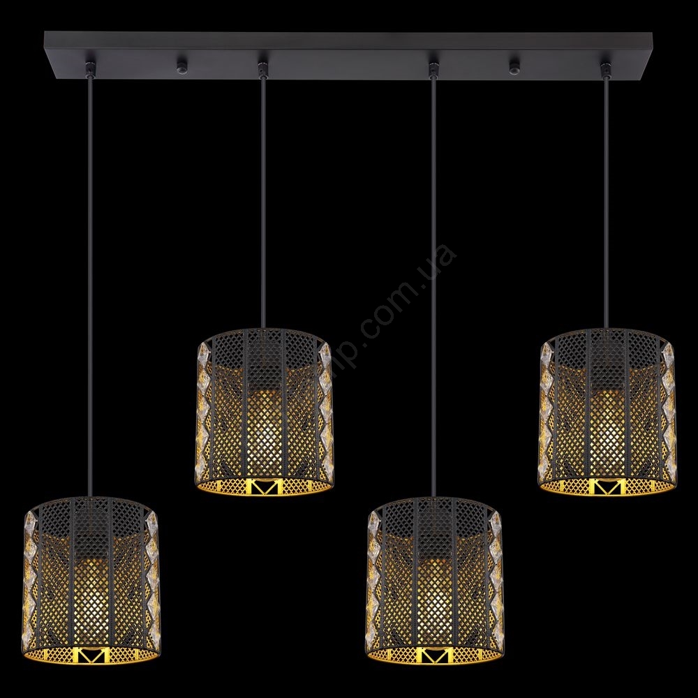 Globo - Люстра на тросі 4xE27/60W/230V золото/чорний характеризується гарним дизайном і функціональним виконанням. Для світильника призначена лампочка з цоколем E27. Тут Ви можете купити інші лампочки за вигідною ціною. Таким чином, Ви отримаєте цікаве доповнення до свого будинку.