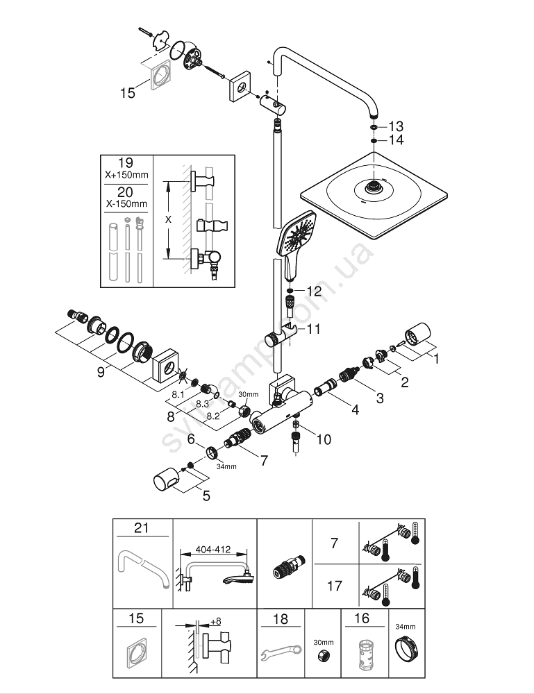 • GROHE FastFixation з регульованим верхнім кронштейном для простої установки.