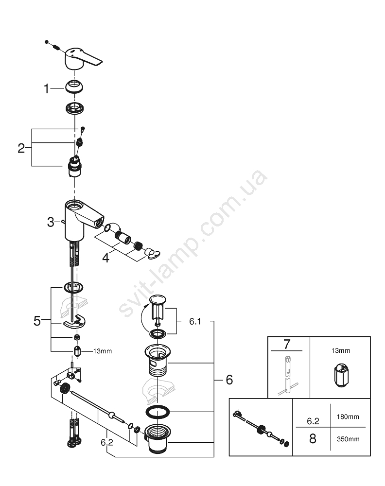 • Аератор GROHE Water Saving зі витратою 5,7 л/хв економить воду.