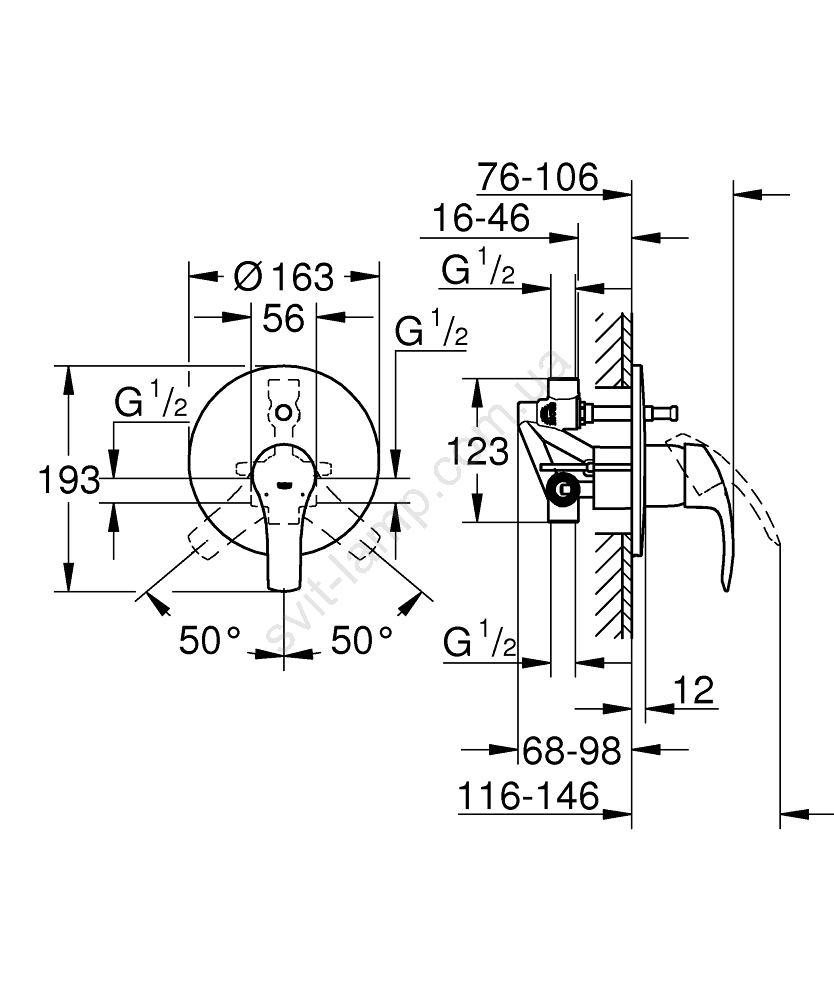 • 46mm керамічний картридж GROHE SilkMove забезпечує плавне і точне регулювання температури та витрати води.
