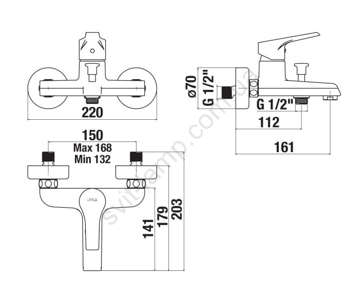 • Настінний ванний змішувач для високого тиску.