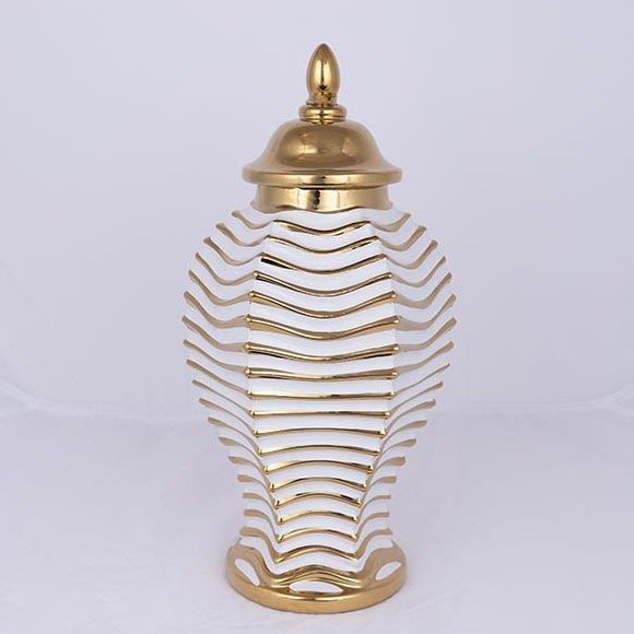 • Золотистий колір підкреслює контури візерунка та кришки, надаючи вазі розкішного та вишуканого вигляду.