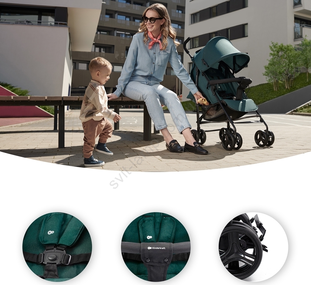 • Легкий та компактний візок, ідеальний для подорожей та використання у громадському транспорті.