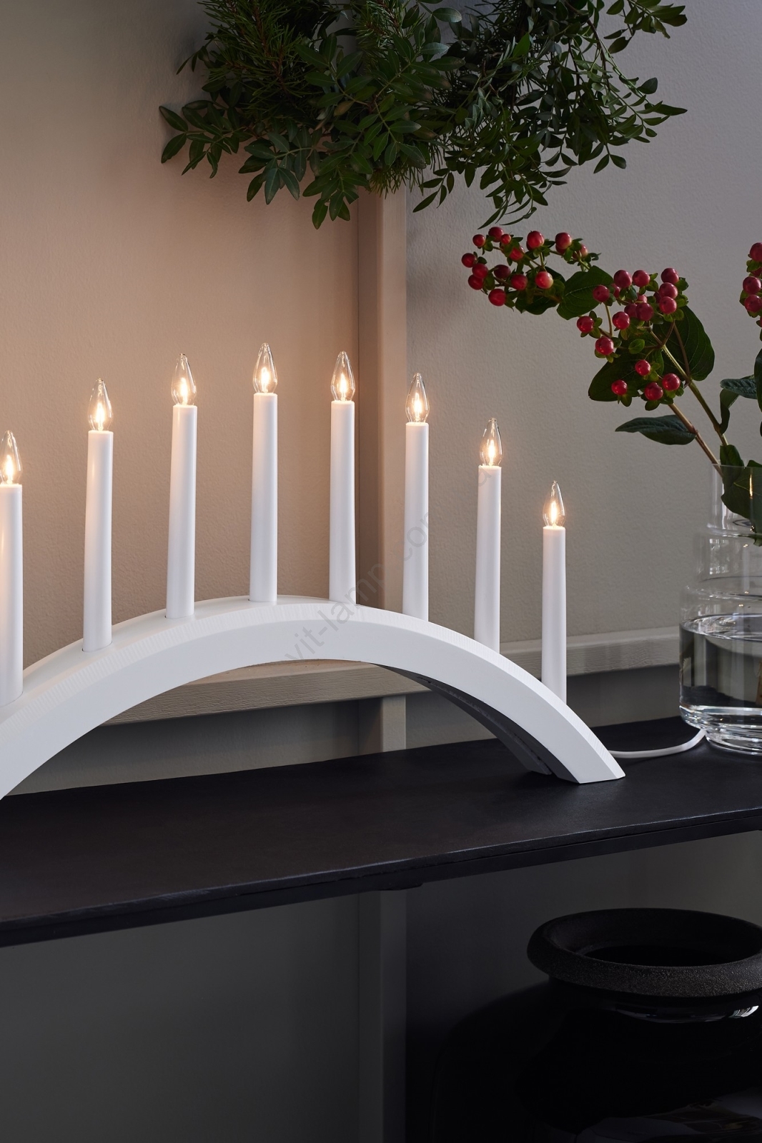 Markslöjd 705954 - Різдвяний підсвічник AVENTO 9xE10/3W/230V білий характеризується гарним дизайном і функціональним виконанням. Для світильника призначена лампочка з цоколем E10. Тут Ви можете купити інші лампочки за вигідною ціною. Таким чином, Ви отримаєте цікаве доповнення до свого будинку. Використання натуральних матеріалів надає кожному виробу неповторного вигляду. Характерні риси дерева з сучками та текстурою гарантують унікальність кожного виробу, тому вони не можуть бути ідентичними з виробами на зображеннях. У зв'язку з цим ми хотіли б відзначити, що скарги з приводу відмінностей дерев'яного візерунка не приймаються через різноманітність природного матеріалу.