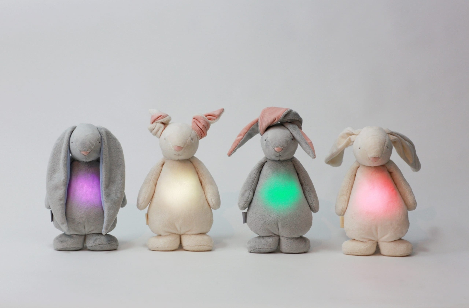 Животик зайчика світиться і слугує нічником, який світить одним із семи кольорів на вибір.
