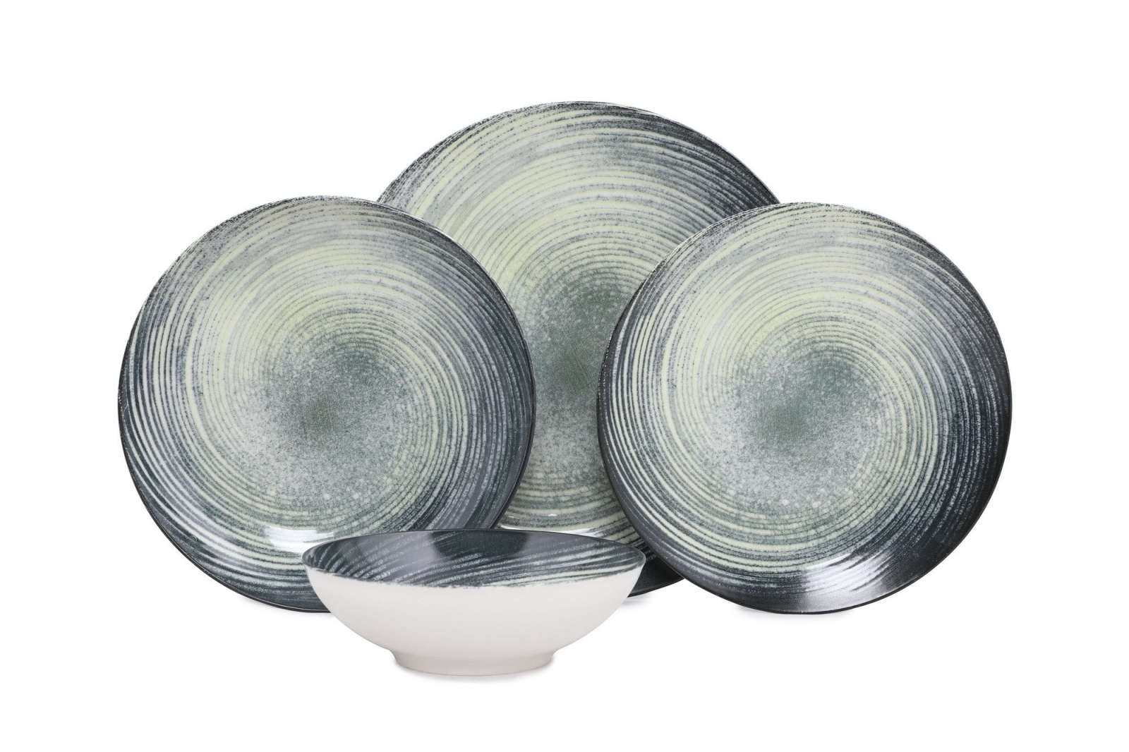 Набір столового посуду, 24 шт., зелений/чорний, фарфор