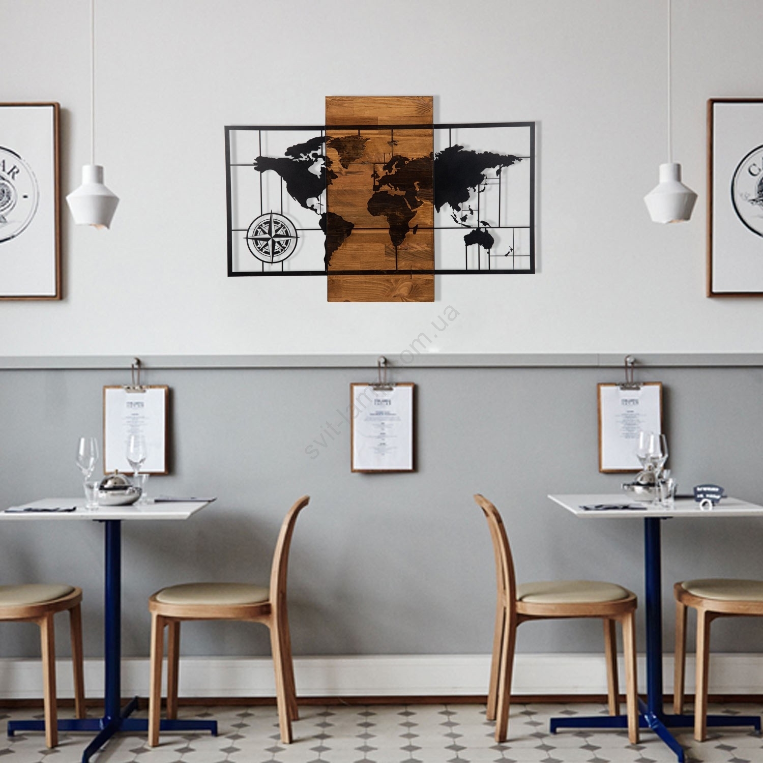 Настінна підвісна декорація з мотивом карти світу.