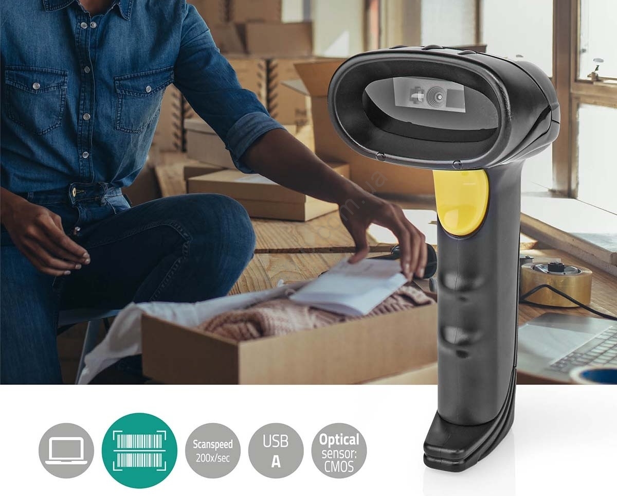 • Завдяки ергономічній конструкції з міцних матеріалів цей сканер штрихкодів призначений для масового сканування та тривалого використання.