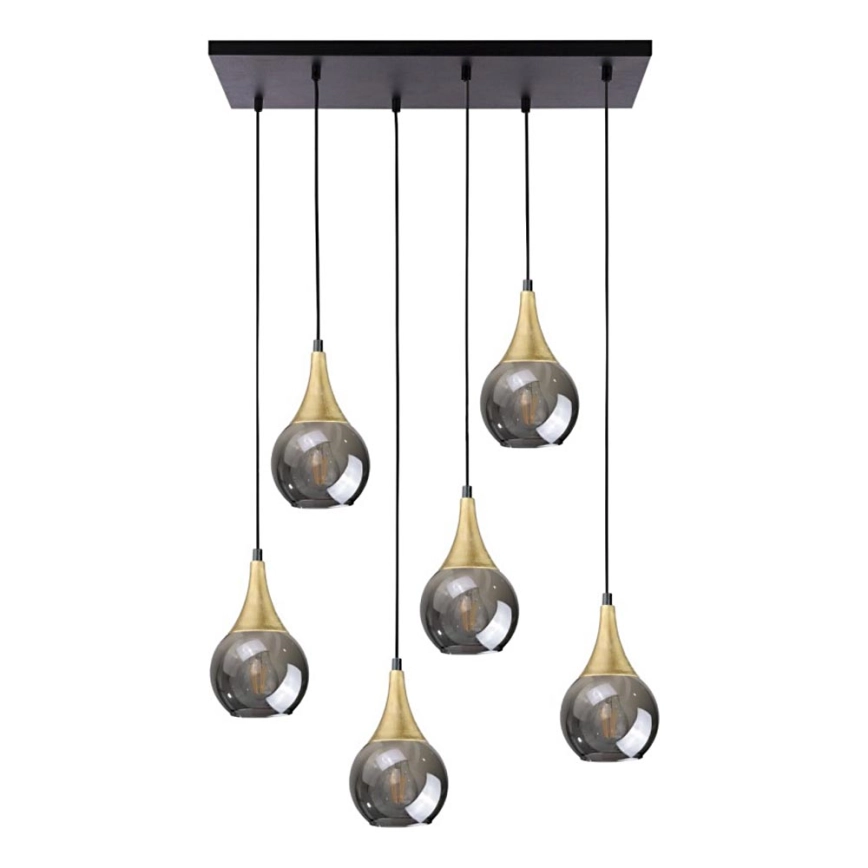 Підвісна люстра LACRIMA SMOKY 6xE27/60W/230V чорний/золотий/димчастий чорний характеризується гарним дизайном і функціональним виконанням. Для світильника призначена лампочка з цоколем E27. Тут Ви можете купити інші лампочки за вигідною ціною. Таким чином, Ви отримаєте цікаве доповнення до свого будинку.