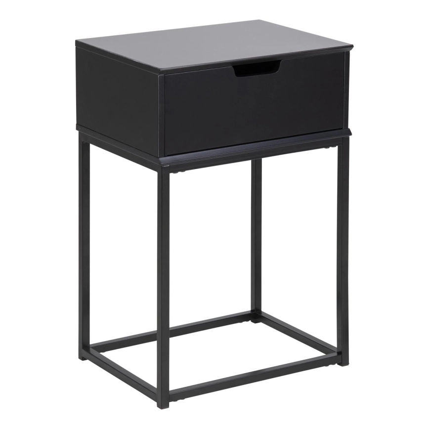 Верхня стільниця, каркас і шухляда з MDF, покриті УФ-лаком чорного кольору, основа з сталі з чорним порошковим покриттям.