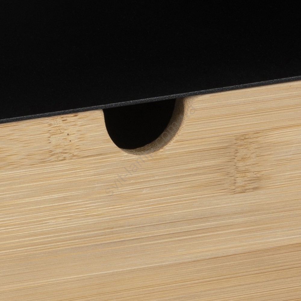 • Верхня панель і каркас із матової чорної порошкової фарбованої сталі, шухляда з лакованого бамбука NC з відкритим відділенням і можливістю настінного монтажу.