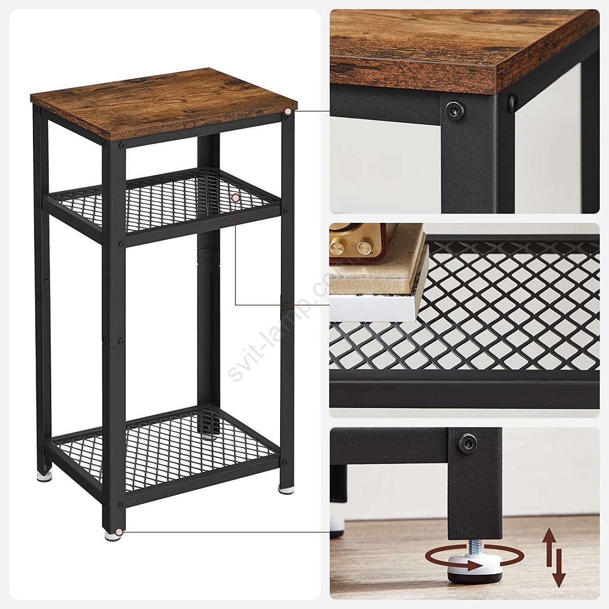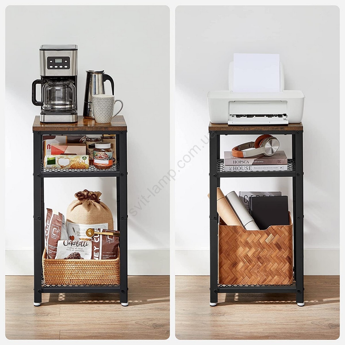 • Завдяки тонкому профілю займає мало місця на підлозі і водночас пропонує достатньо місця для зберігання завдяки трьом полицям.