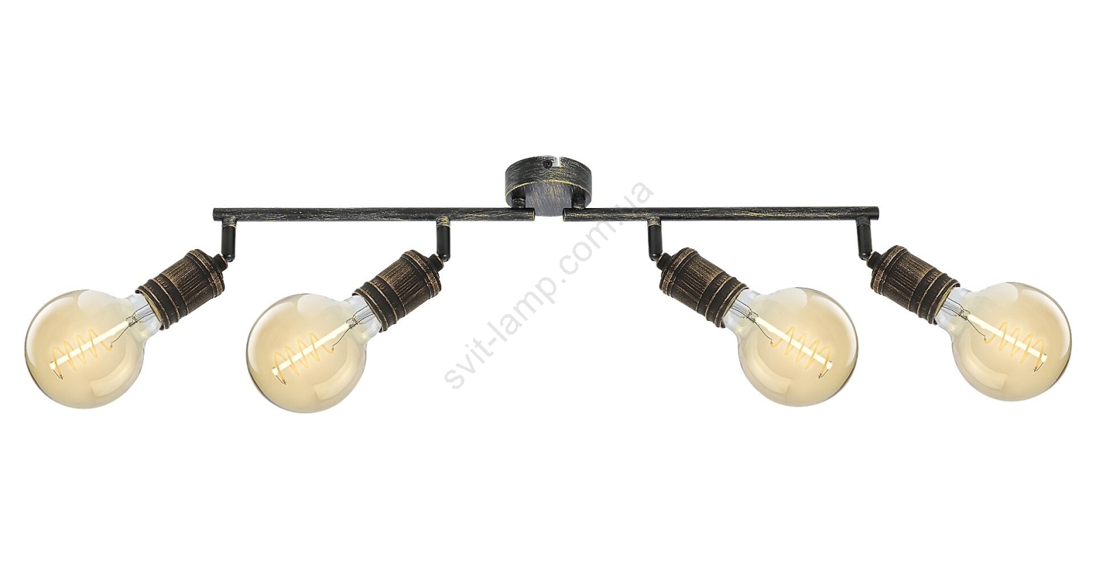 Точковий світильник Fidel з 4 лампами в індустріальному стилі може стати відмінним вибором для різних кімнат вашої квартири: його можна встановити у вітальні, спальні, їдальні або навіть на кухні. Антикварний золотистий металевий світильник кріпиться до стіни за допомогою невеликої круглої декоративної основи. 4 плафони світильника розташовані на несучій штанзі, що складається з двох частин, і закріплені на декоративній базі. Лампи встановлюються окремо. Світильник Fidel призначений для використання з 4 лампами потужністю до 25 Вт кожна. Тип цоколя – E27. Залежно від ваших уподобань та місця встановлення, ви можете обрати тепле або природне біле світло для цього світильника. Завдяки гнучким плафонам світильника ви можете направляти світло цього стельового світильника відповідно до своїх потреб. Розміри точкового світильника Fidel з 4 лампами: ширина 740 мм, висота 130 мм, відстань від стелі 115 мм, монтажний діаметр 80 мм. Ця модель постачається без джерел світла.