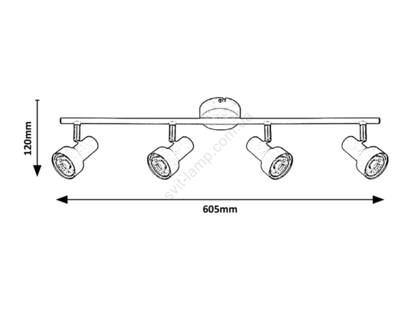 Точковий світильник Konrad з 4 лампами, який представляє класичний стиль, стане свіжим і приємним елементом оформлення вашої вітальні, спальні або дитячої кімнати. Ідеально впишеться майже в будь-який інтер’єр, виконаний у світлих пастельних тонах. Ця матова біла модель повністю виготовлена з металу і може бути закріплена на стелі за допомогою невеликої круглої декоративної основи. Абажури циліндричні, розширюються донизу. Точковий світильник з 4 лампами завдяки своїм розмірам чудово підходить для освітлення просторої кімнати. Світильник Konrad сумісний із чотирма лампами потужністю до 50 Вт кожна. Тип цоколя – GU10. Щоб створити в кімнаті інтимну, затишну атмосферу, оберіть для цього світильника тепле біле світло. Загальна ширина точкового світильника Konrad з 4 лампами становить 605 мм, відстань від стелі – 120 мм. Ця модель постачається без джерел світла.