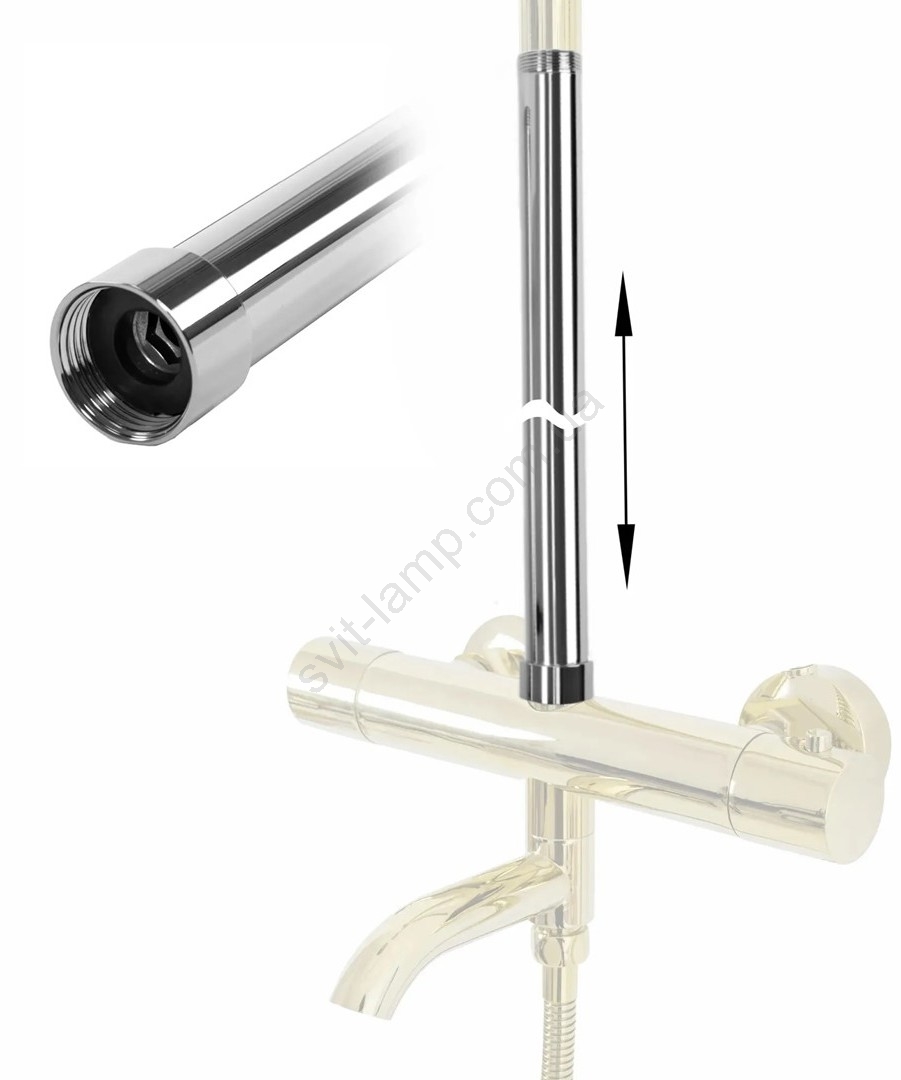 • Подовжувальний адаптер, призначений для ванних або душових комплектів – дозволяє підняти розташування верхнього душа вище стандартної установки.