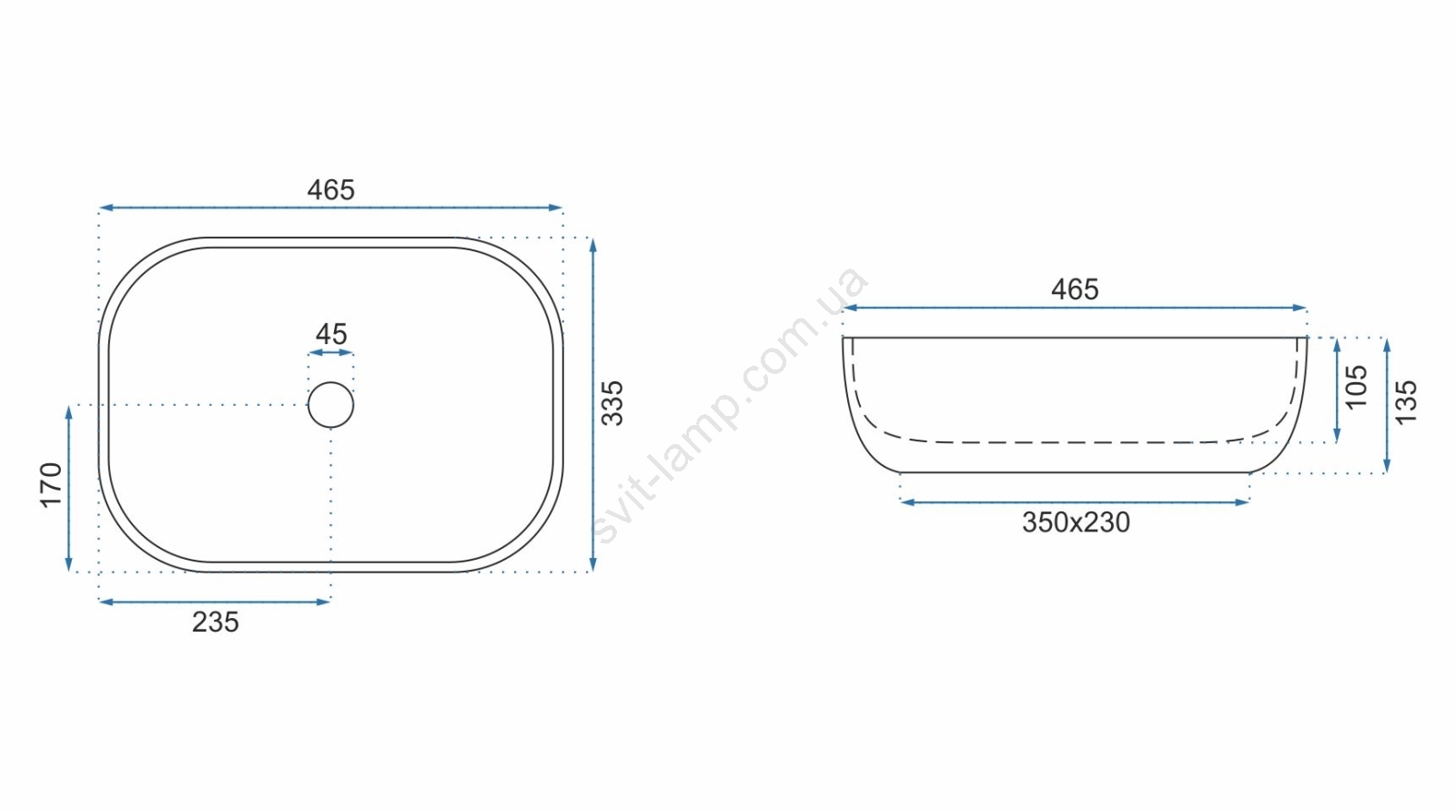 REA-U3802 - Накладний умивальник LIVIA 33,5x46,5 см кераміка/сірий/мармуровий декор