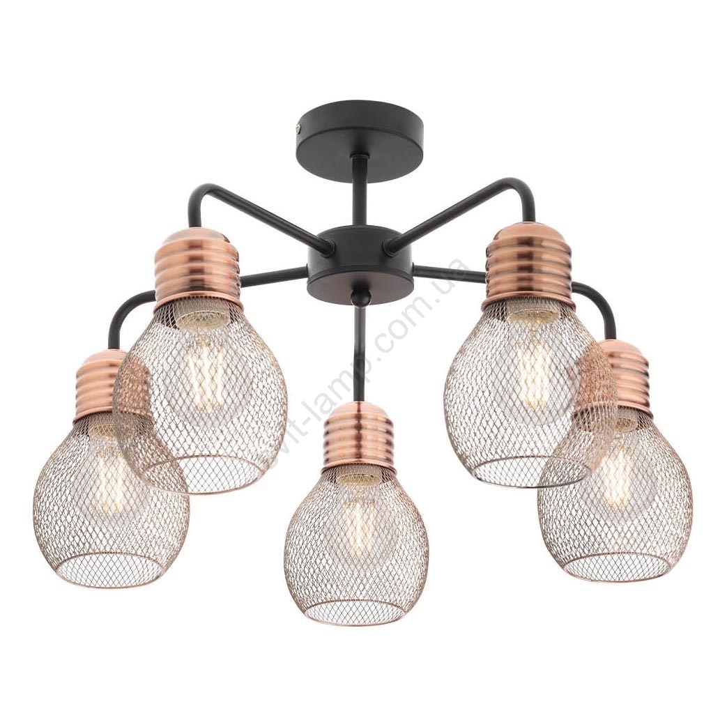 Redo 01-1577 - Люстра на штанзі EDISON 5xE27/42W/230V діаметр 53 см чорна/мідна характеризується гарним дизайном і функціональним виконанням.  Для світильника призначена лампочка з цоколем E27. Тут Ви можете купити інші лампочки за вигідною ціною. Таким чином, Ви отримаєте цікаве доповнення до свого будинку.