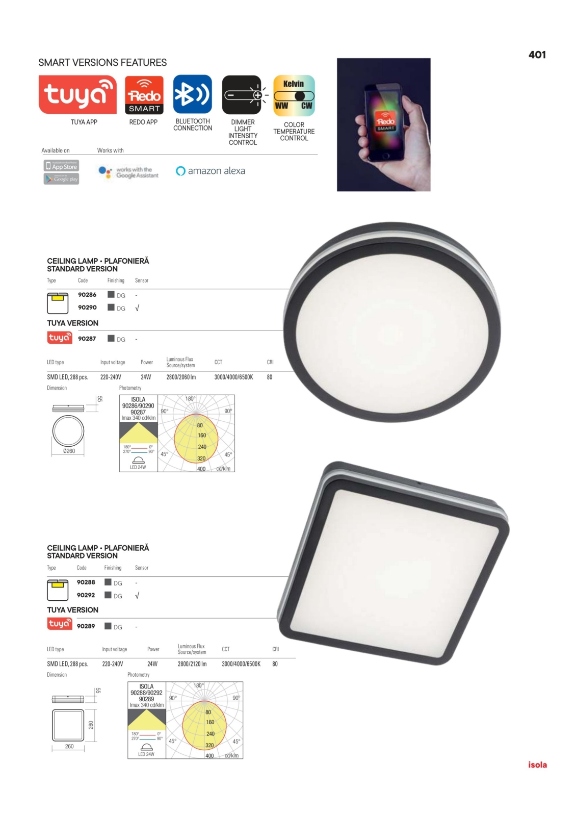 Redo 90288 - Вуличний світлодіодний стельовий світильник ISOLA LED/24W/230V 26x26 см 3000/4000/6500K IP54 антрацит