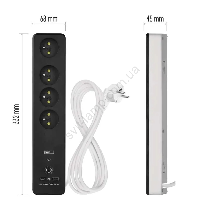 • Подовжувач довжиною 2 метри з 4 розетками, портом USB-A та швидкісним USB-C перетворить звичайний пристрій на розумний, яким можна керувати дистанційно.