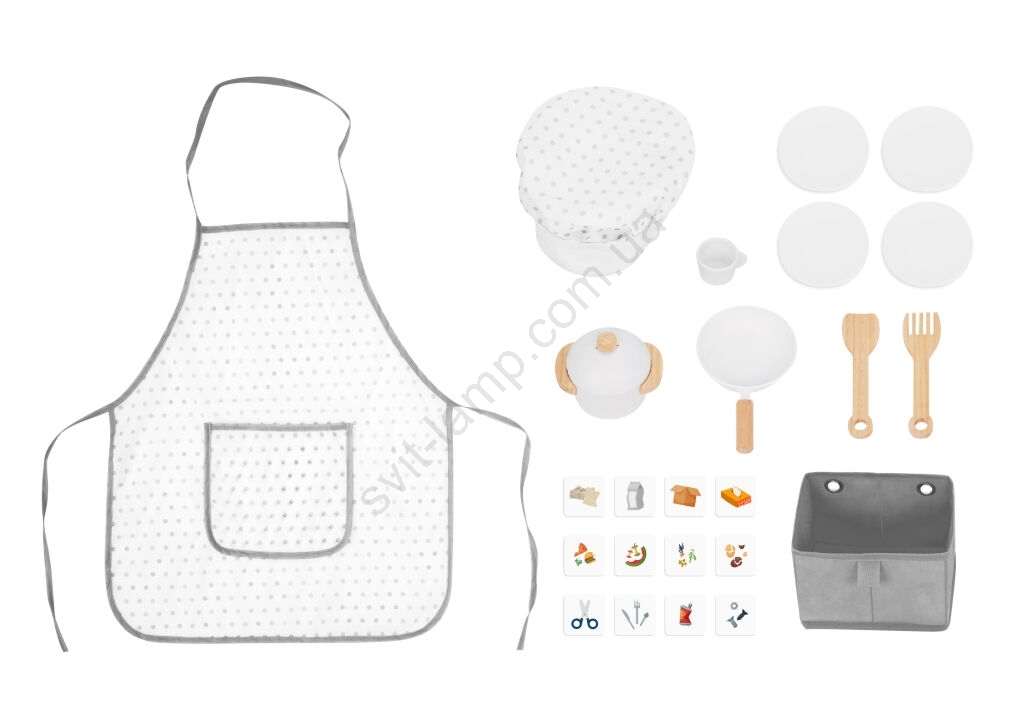 • В комплект входят фартук и поварская шапка.