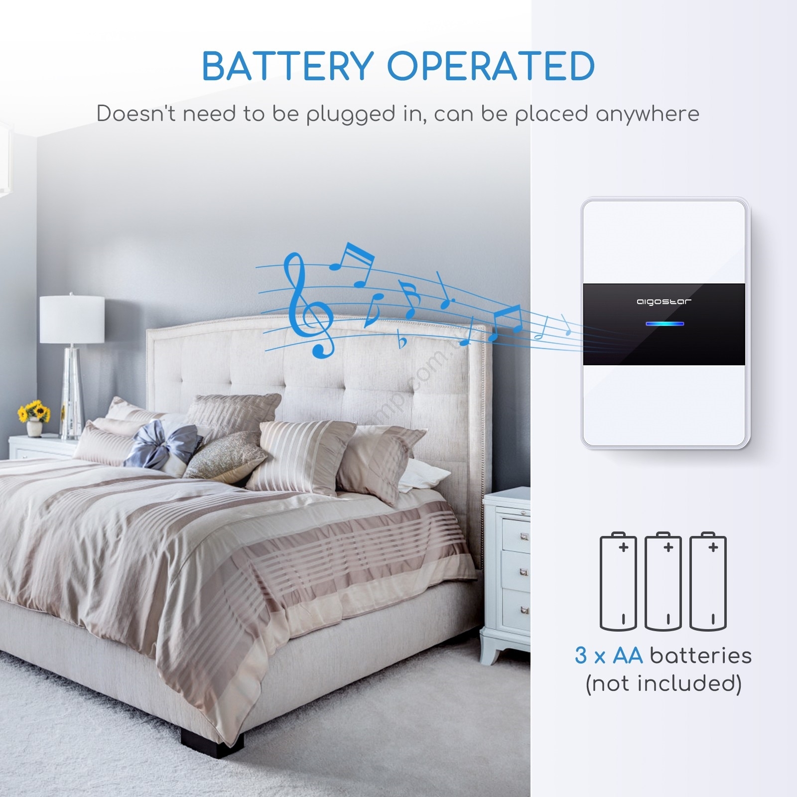 • Питание дверного звонка: 3x батарейки типа AA (батарейки не входят в комплект).
