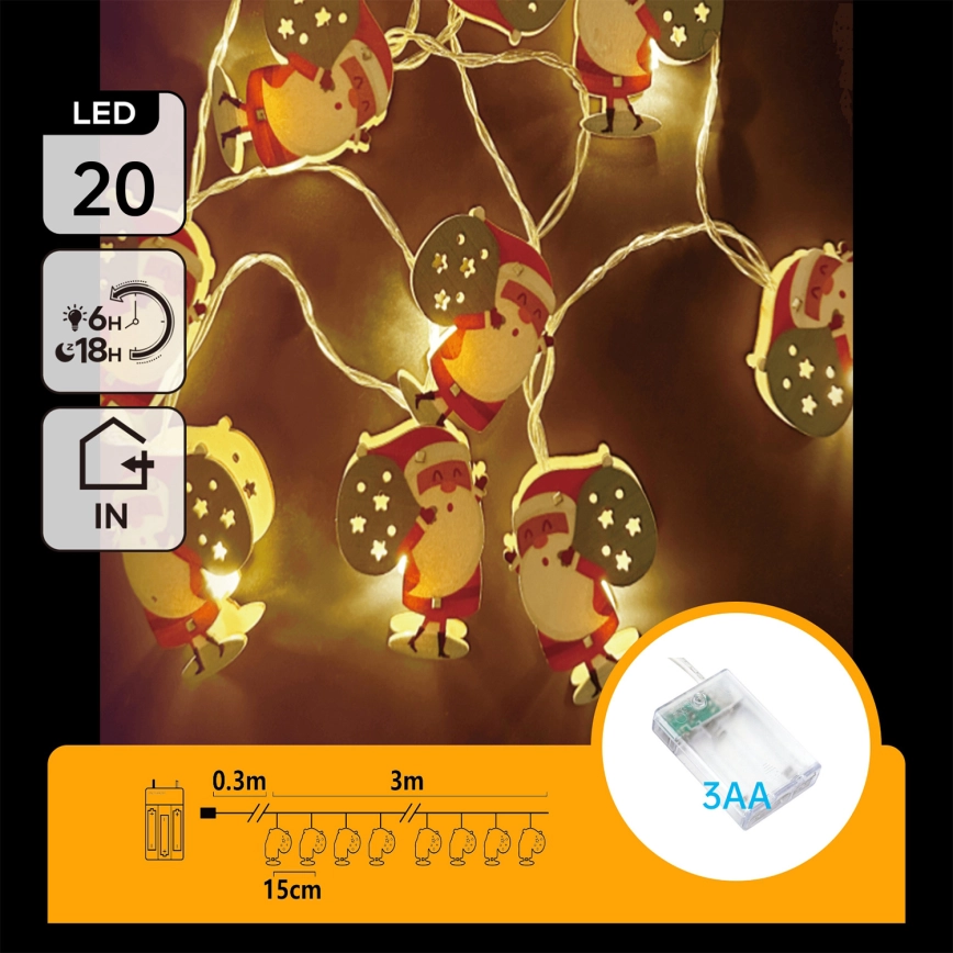 Aigostar - LED гирлянда 20xLED/3xAA 3m тёплый белый Санта-Клаус