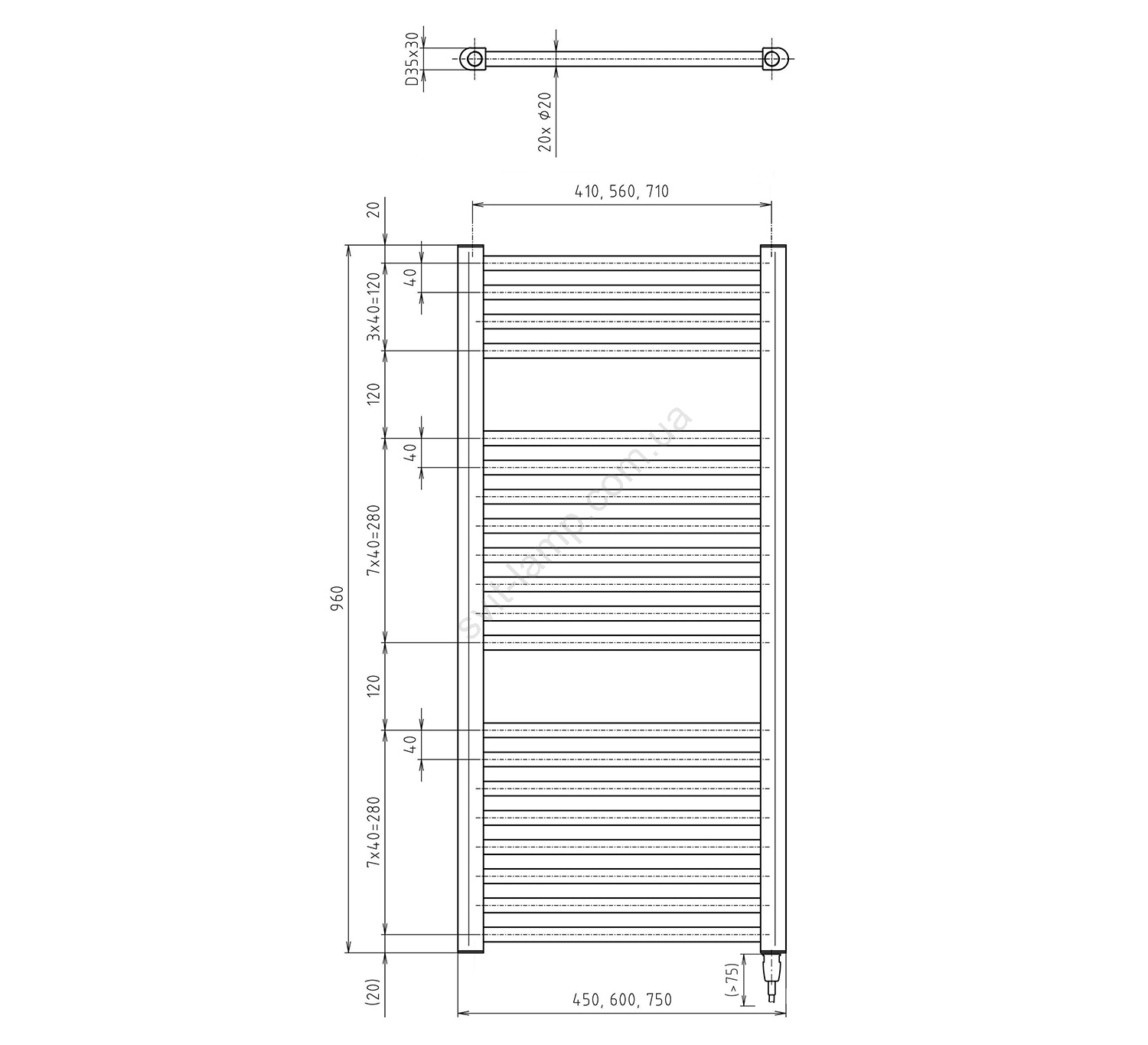 Aqualine - Электрический радиатор для ванной комнаты DIRECT-E 300W/230V 96 см белый прямой