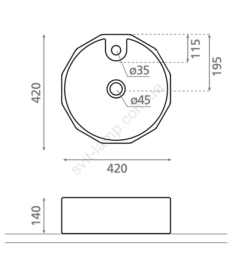 Bathco 4158 - Накладная раковина CIRCUS, диаметром 42 см, фарфор/белая