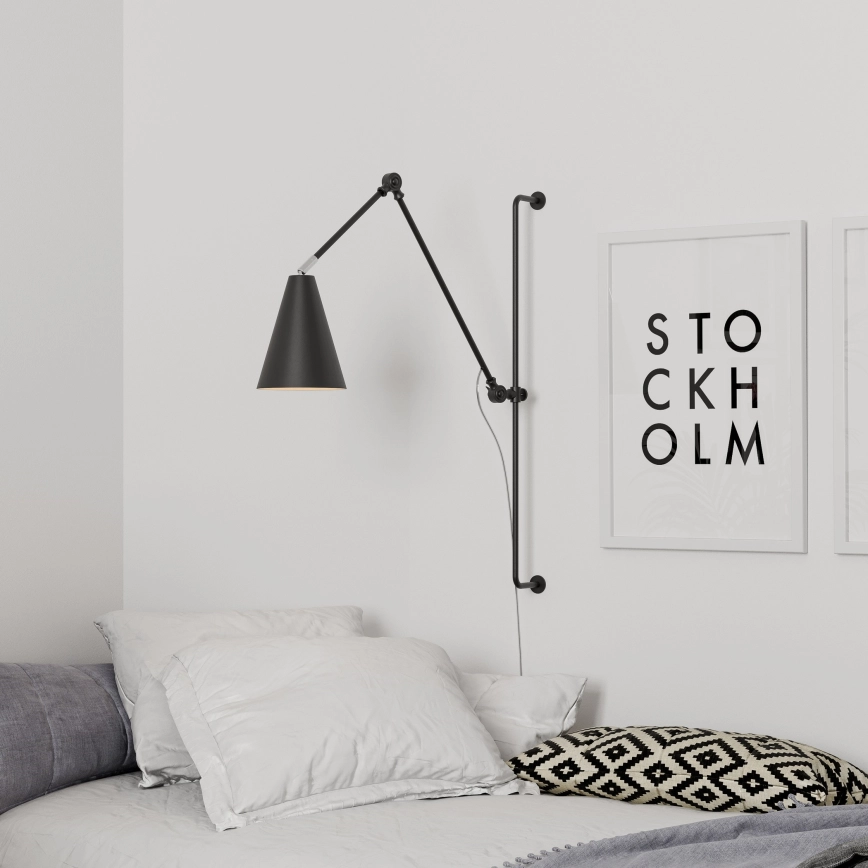 • Светильник привлекает внимание элегантным индустриальным дизайном с длинным, тонким рычагом, создающим ощущение легкости и минимализма.