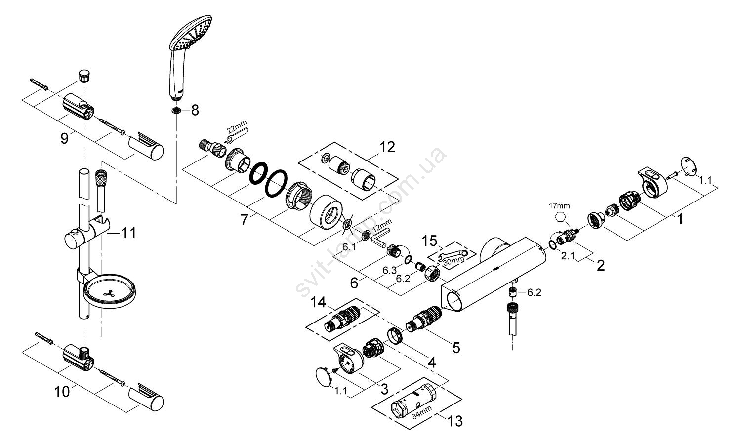 • Система GROHE QuickFix обеспечивает быструю и беспроблемную установку душевой штанги.