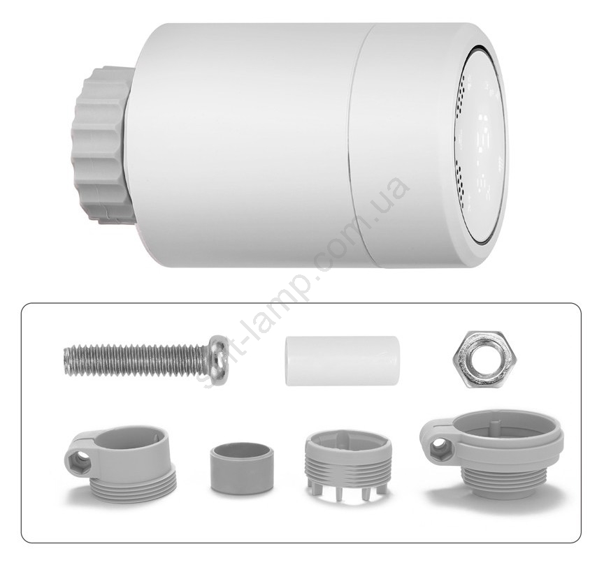 Набор из 3 умных термостатических головок, определяющих температуру окружающего воздуха и регулирующая поток воды в радиаторе, на который она установлена.