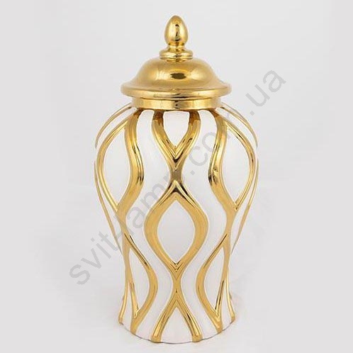 • Золотые и белые детали покрыты блестящей глазурью, что придает вазе роскошный и изысканный вид.