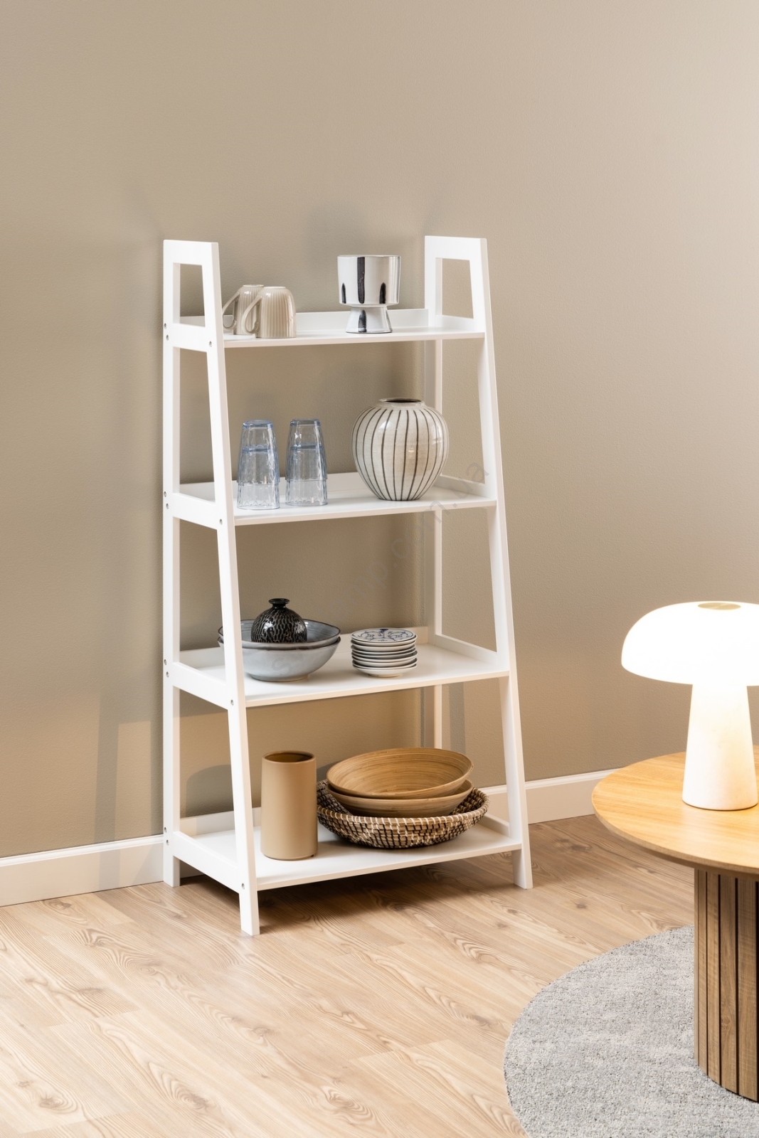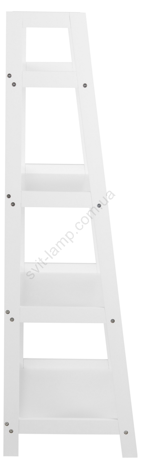Каркас и основание из белой MDF с лаком NC, 4 полки из белой MDF с UV-лаком