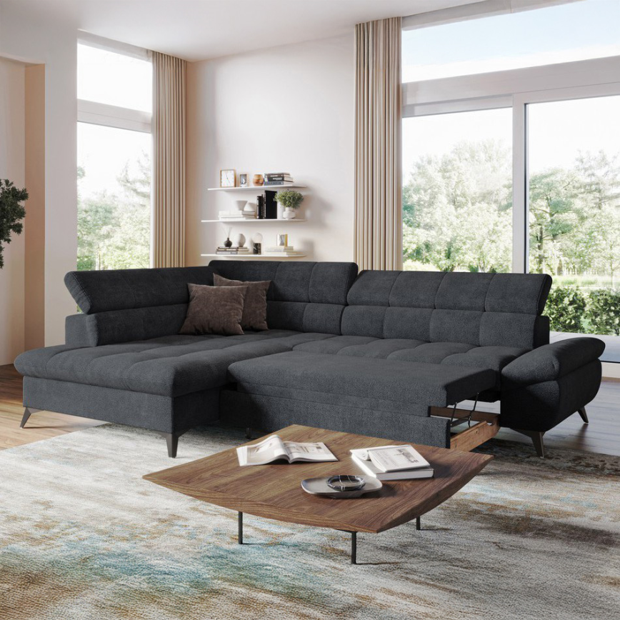 Раскладной угловой диван в форме буквы L MARANO левый черный