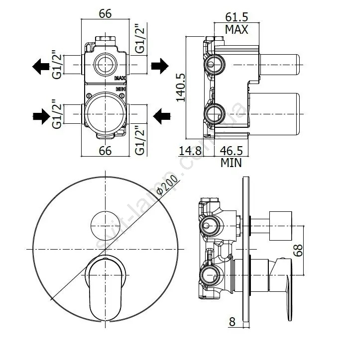 • Подходит для комбинации, например, с ручным душем и верхней душевой лейкой.