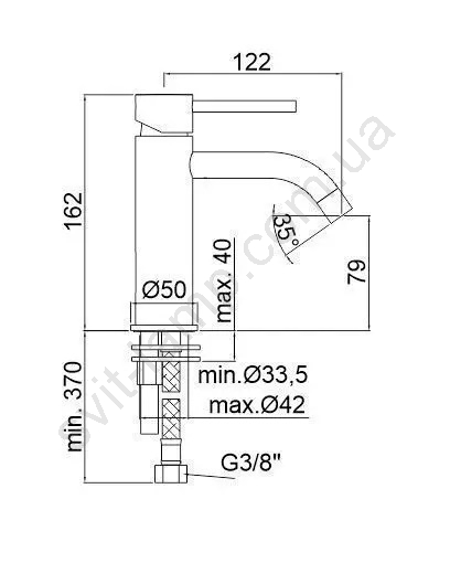 • Вариант без донного клапана – сливное устройство для раковины приобретается отдельно.