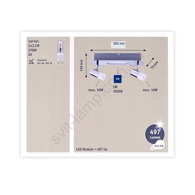 Paulmann 66647 - Светильник точечный LED 2xG9/10W/230V + LED/5W