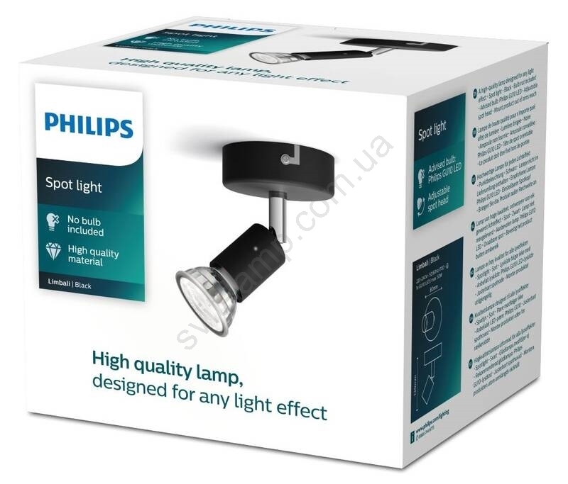 Philips - Точечный светильник 1xGU10/50W/230V черный характеризуется хорошим дизайном и функциональным исполнением. Для светильника предназначена лампочка с цоколем GU10. Здесь Вы можете купить другие лампочки по выгодной цене. Таким образом, Вы получите интересное дополнение к своему дому.