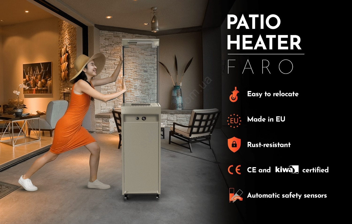 Входящая в комплект крышка защищает газовый обогреватель в любое время года.