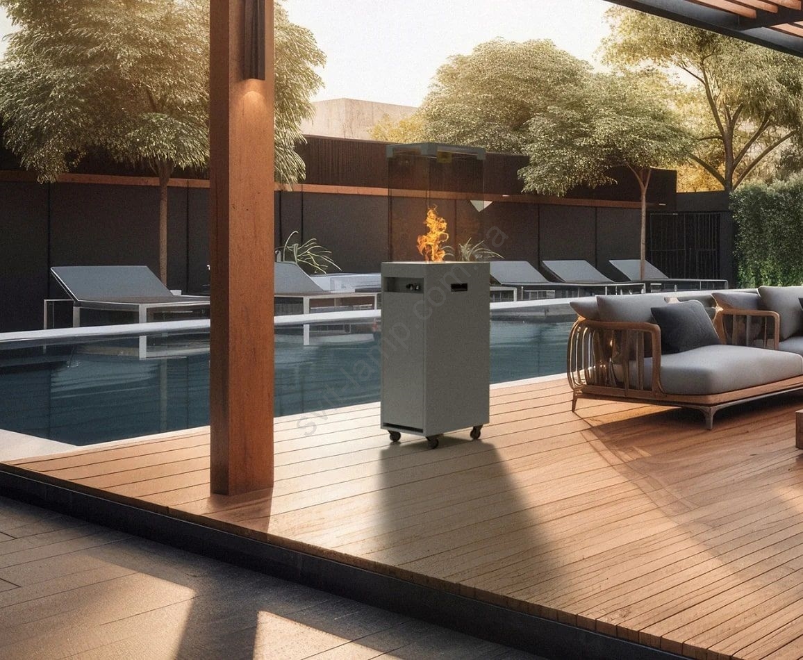 благодаря прикрепленным колесикам камин полностью мобилен.