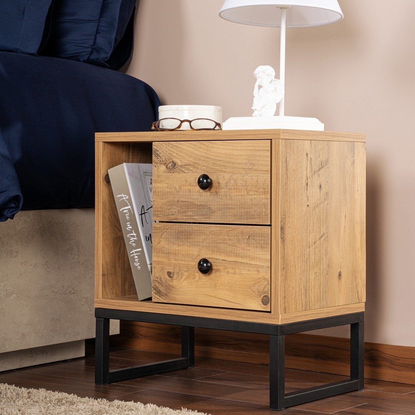 Прикроватная тумба GLIMMER 50x45,2 см сосна атлантическая/черный поразит вас не только внешним видом, но и качественным дизайном. Благодаря дизайну он впишется в любой интерьер и станет отличным дополнением любого дома или квартиры. Существуют различные доступные версии, которые наилучшим образом удовлетворят ваши потребности. Высококачественный материал гарантирует долгий срок службы. Вы можете выбрать больше здесь Прикроватные и туалетные столики Наши изделия изготовлены из высококачественного ламината, что гарантирует долгий срок службы и высокую прочность. Из-за натуральности этого материала могут возникнуть небольшие различия в цвете, что придает каждому изделию уникальный вид.