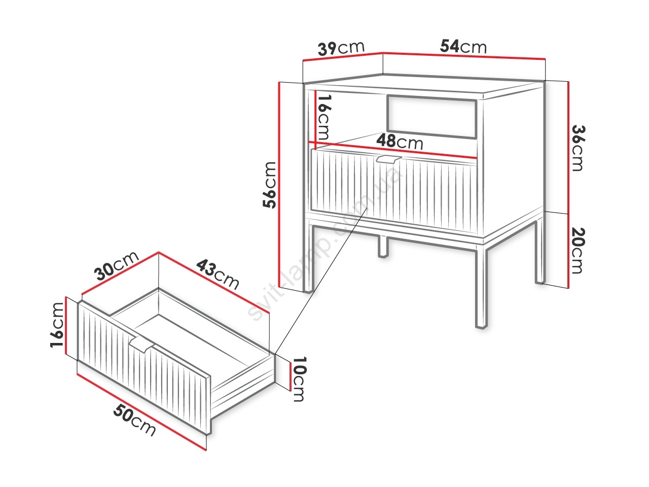 Изготовлен из ДСП толщиной макс. 18 мм.