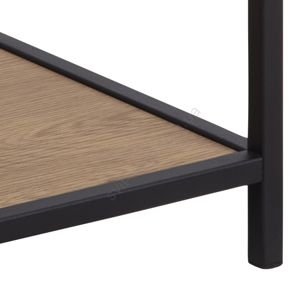 Верхняя панель, каркас, ящик и полка выполнены из матового крафта, основание — из матовой черной стали с шероховатым порошковым покрытием и металлическими направляющими.
